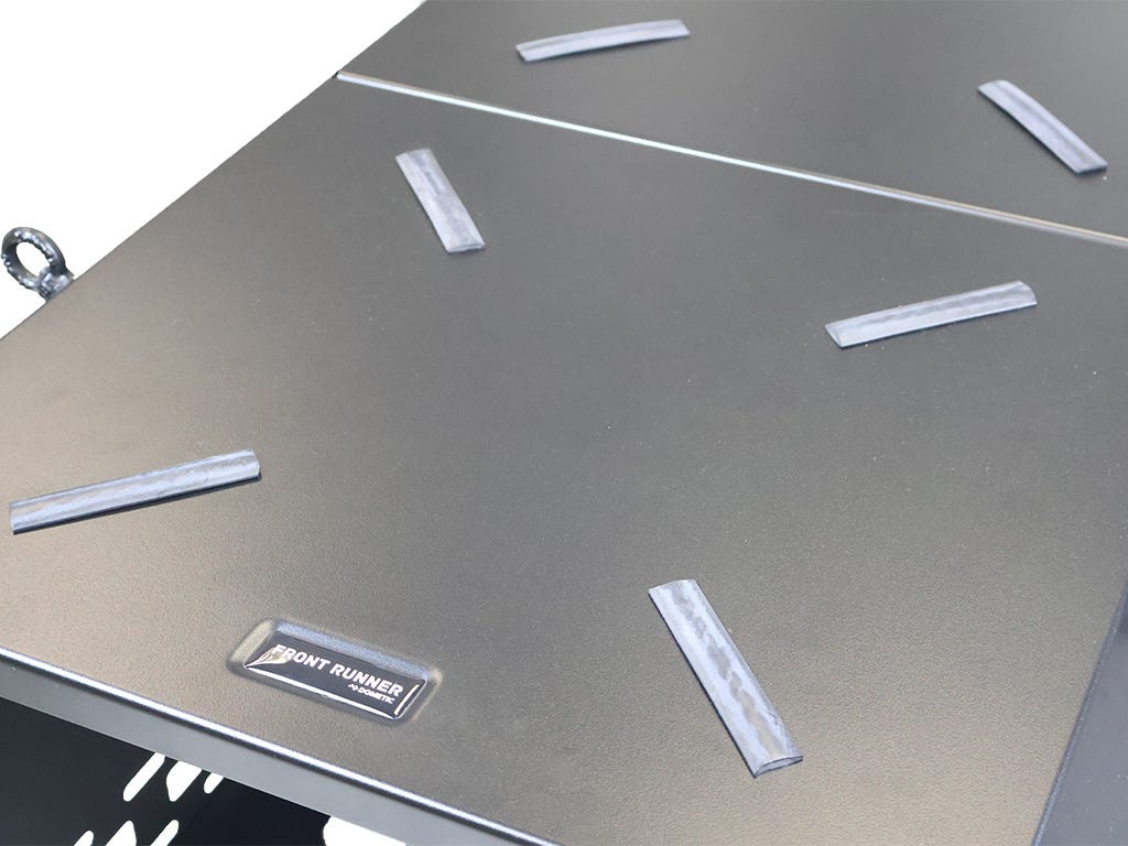 A Fridge Slide and Cage Combo / Large that create a complete protective cove around your Dometic CFX3 75DZ Dual Cooler/Freezer / CFX5 75DZ Electric Cooler*. This Fridge Slide and Cage Combo ensures packed cargo remains in place and free from the rear of the fridge slide when sliding the fridge out. Mountable to any flat surface, such as the rear loading area of a SUV or pickup truck beds. The Fridge Cage has 3 (three) adjustable height settings to accommodate various makes of fridges. This Fridge Cage, when assembled on the lowest height setting, accommodates the full operations of the Dometic CFX3 75DZ Dual Cooler/Freezer / CFX5 75DZ Electric Cooler*. The Fridge Cage is designed with Molle pattern sides to mount smaller items directly onto the fridge cage. Includes 2 (two) sets of RRAC012 at the top of the fridge cage to strap down cargo, such as 2 (two) Wolf Pack Pro boxes with STRA034*. The slide-out extension gives you an additional 470mm/18.5” x 325mm/12.8” work surface and extend nearly 100% from the anchored base. Slide mounting holes are predrilled. The Fridge Slide features a hold open mechanism to prevent the slider from closing when the vehicle is parked on uneven surfaces. A latching arm securely locks the sliding drawer in the closed position. Finished in the same durable weather-resistant black powder coating as the Front Runner Dometic Roof Racks. Four (4) STRA063 are included to secure your fridge to the fridge slide. Mounting hardware included for wood and metal surfaces.Note: The Fridge and Stratchits are not included when purchasing the Fridge Slide and Cage Combo / Medium. These products are sold separately.