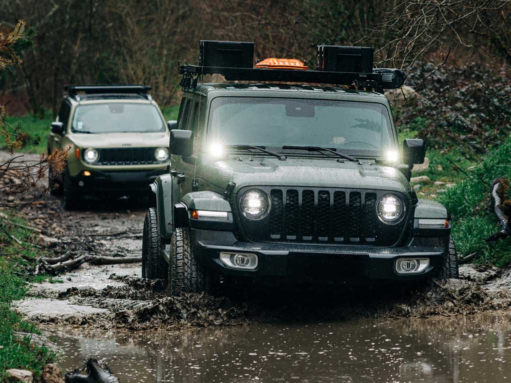 Haul your adventure gear, toys, and cargo to where only your Jeep Wrangler 4xe can go and still have room for more cargo and passengers with the Jeep Wrangler 4xe (2021-Current) Slimline II 1/2 Roof Rack Kit / Tall. Build your next adventure now.